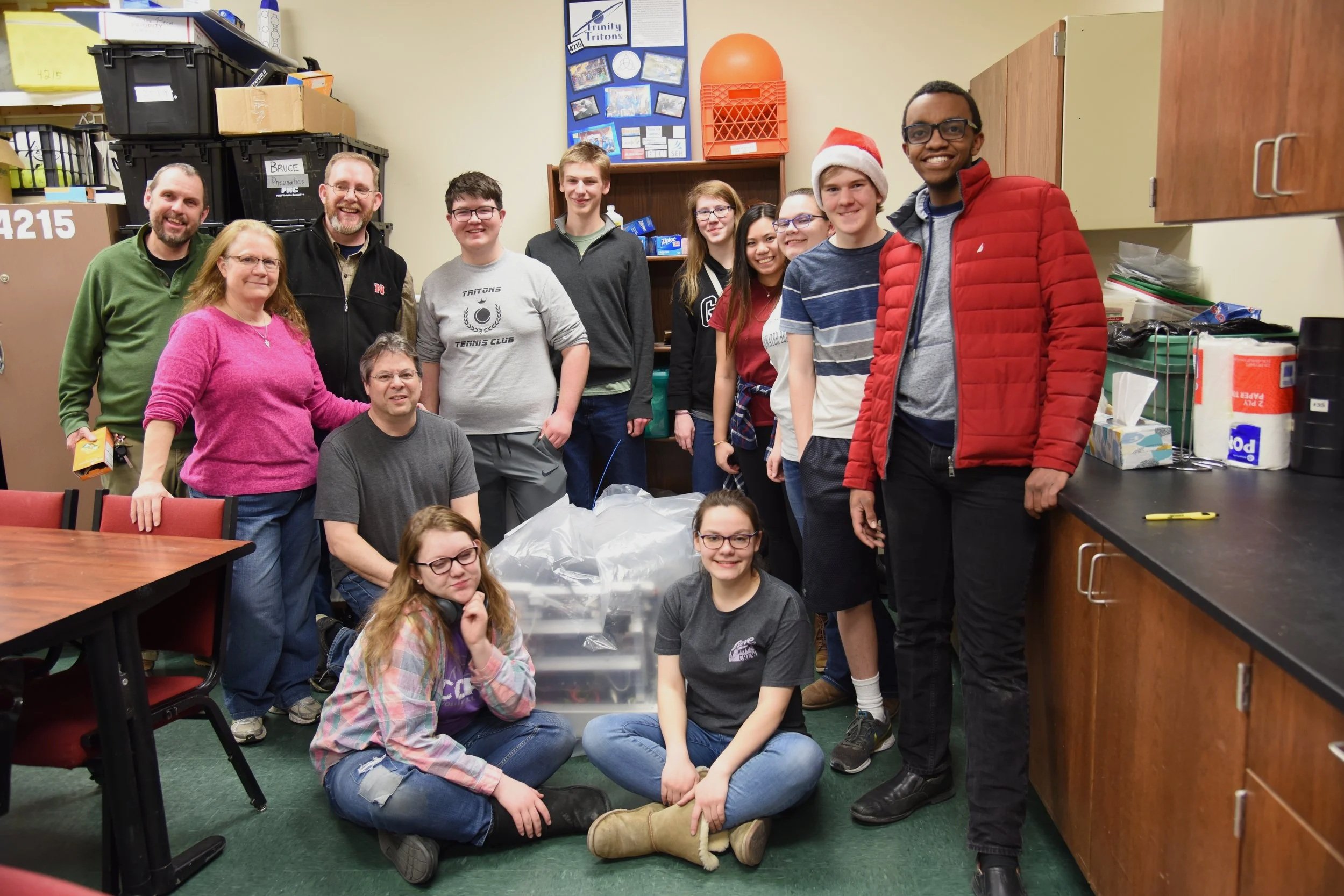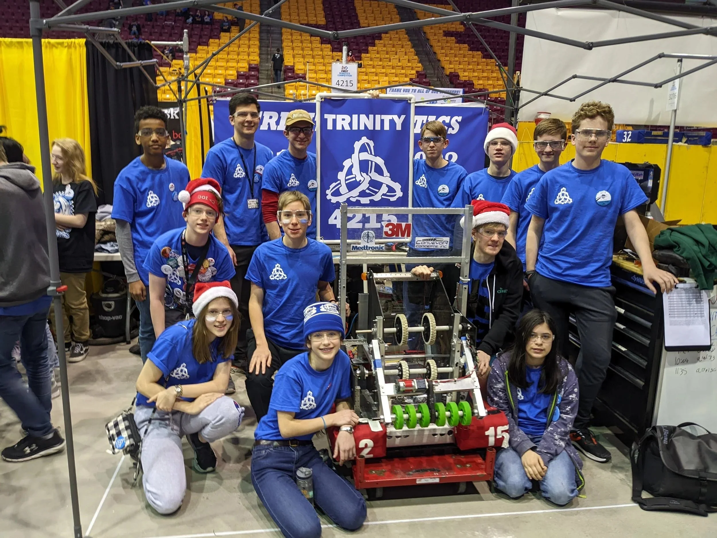 The Trinity Tribots were founded in 2012 by a small group of students. With the guidance of their physics teacher, Dr. David O’Hanley, the Tritons (now known as the Tribots) became a community where students could join together to expand their knowledge and be unafraid of failure. Nevertheless, the team experienced many failures, which quickly grew into successes as the Tritons won both the Minnesota Northern Lights Regional and the Minnesota State Championship in 2015! More important than any placement in a competition, the team managed to provide an opportunity for young minds to grow in creativity, teamwork, courage, resilience, and problem solving.